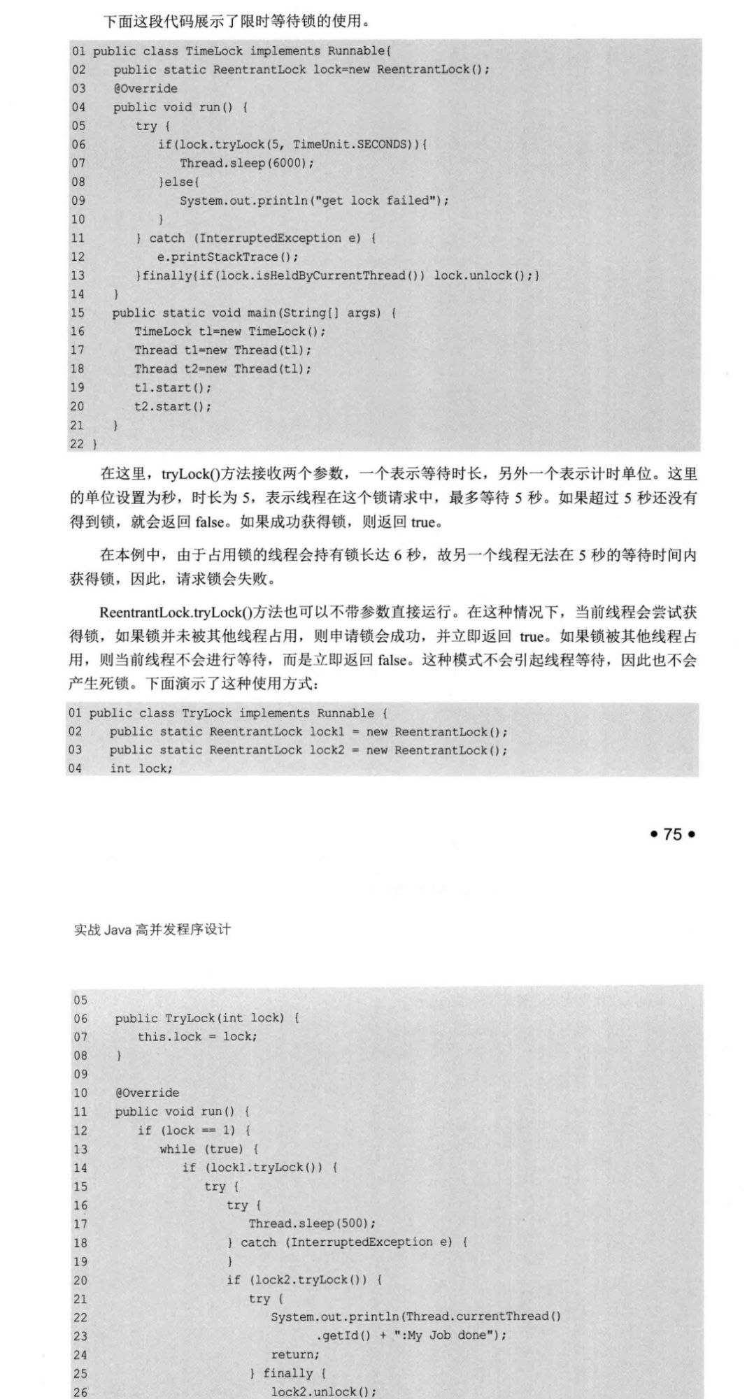 P74的代码,一开始死锁形成的原因是t1占用lock1请求lock2,t2占用lock2请求lock1,而后来死锁得以释放是因为