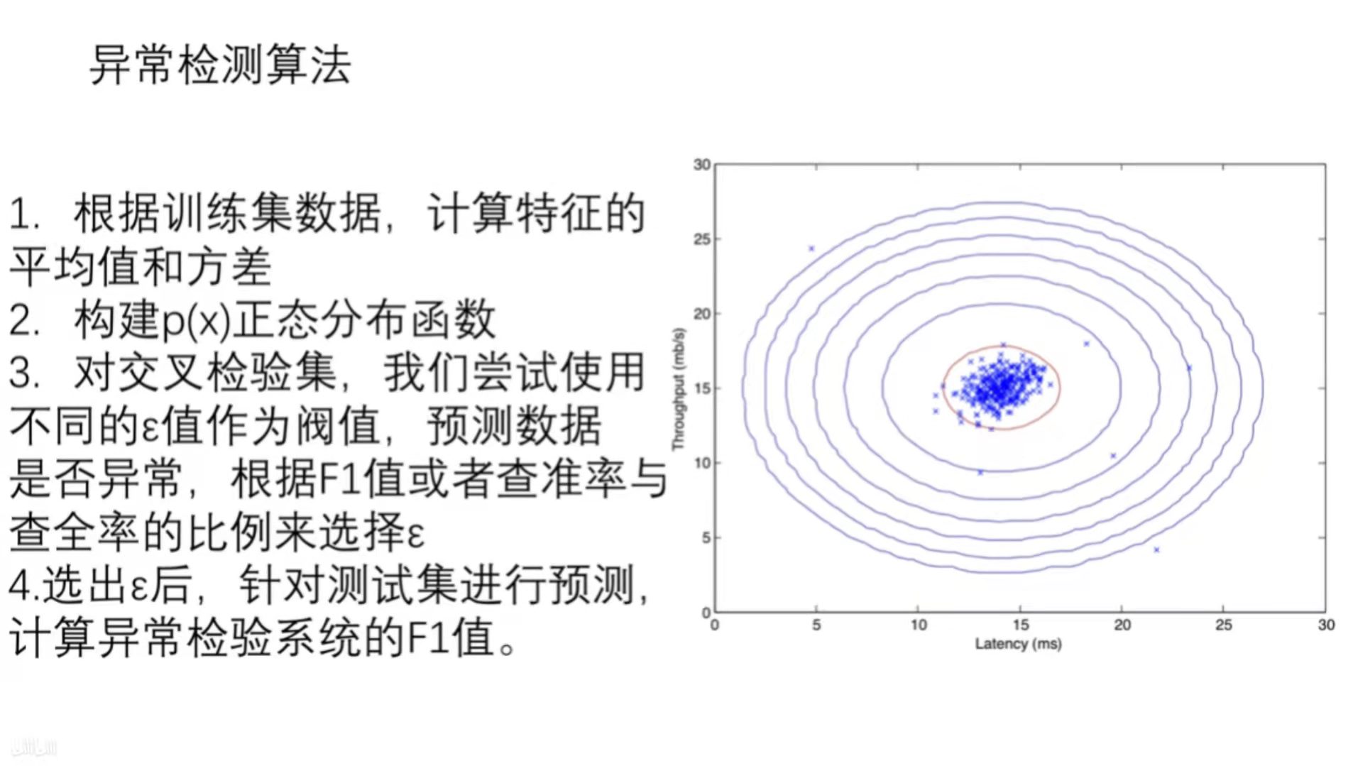 异常检测就是发现与大部分对象不同的对象,其实就是发现离群点。异常检测有时也称偏差检测。异常对象是相对罕见的。用数据集建立概率模型p ( x ),如果新的测试数据在这个模型上小于某个阈值,则说它极大可能为异常点