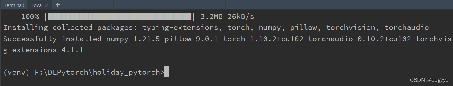 在pycharm虚拟环境中安装的话,先配置cuda、cudnn,然后在pycharm终端中安装对应版本的pytorch。