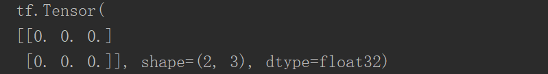 tf.zeros([2, 3]) 创建了一个二维张量,第一个维度有两个元素,第二个维度有三个元素,元素的内容全是 0。
