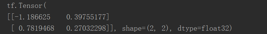 tf.random.normal 生成两行两列的张量,里面的元素符合以 0.5 为均值,1 为标准差的分布。