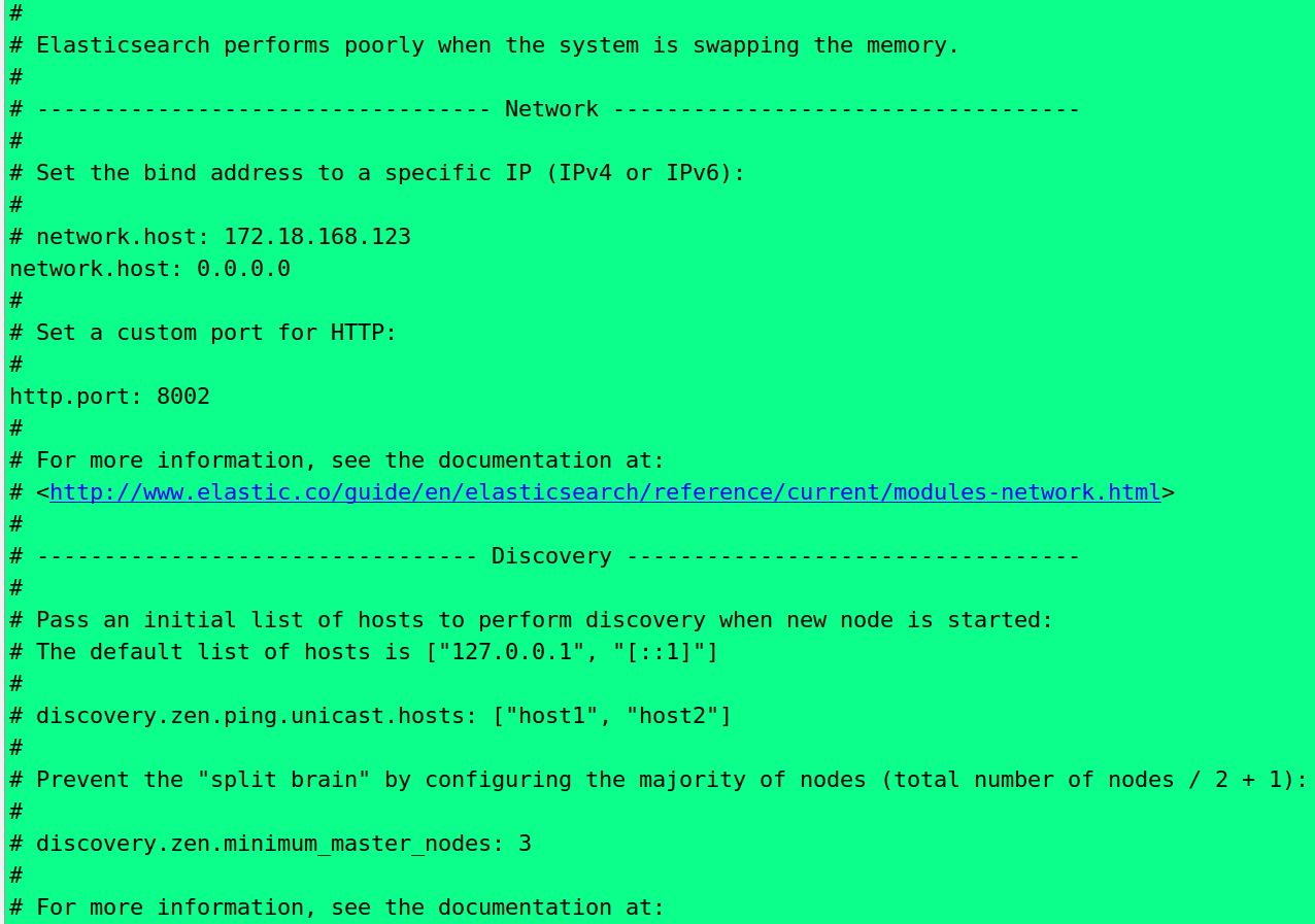 - 同样将配置文件 elasticsearh.zip 也下载下来,解压,将 elasticsearch/config/elasticsearch.yml 中的 ip 地址改为 0.0.0.0,端口改为 8002