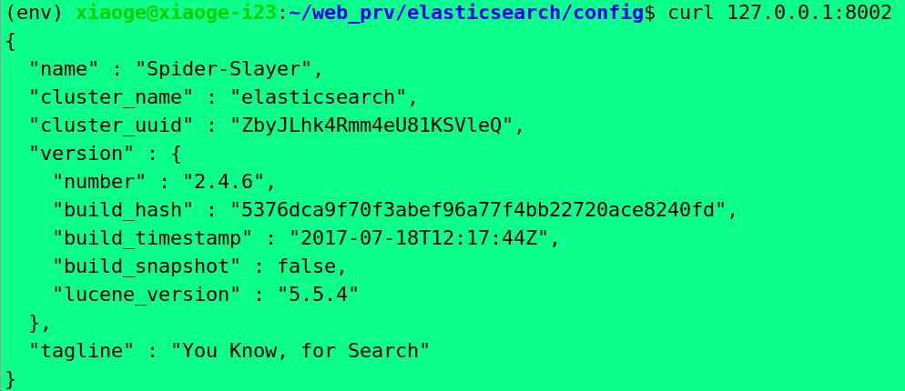 #根据自己的 elasticsearch 所在位置更改上面代码的 config: 前面的路径,-ik表示可以搜索中文