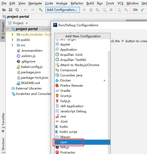下面使用idea打开project-portal前端项目: