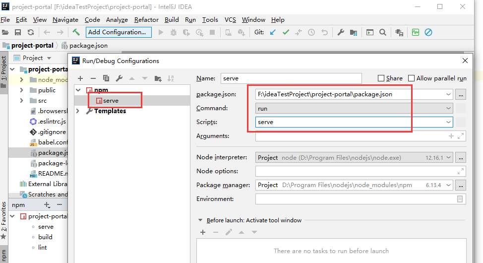 配置IDEA:add configuration -> + -> npm -> 修改配置并应用即可: