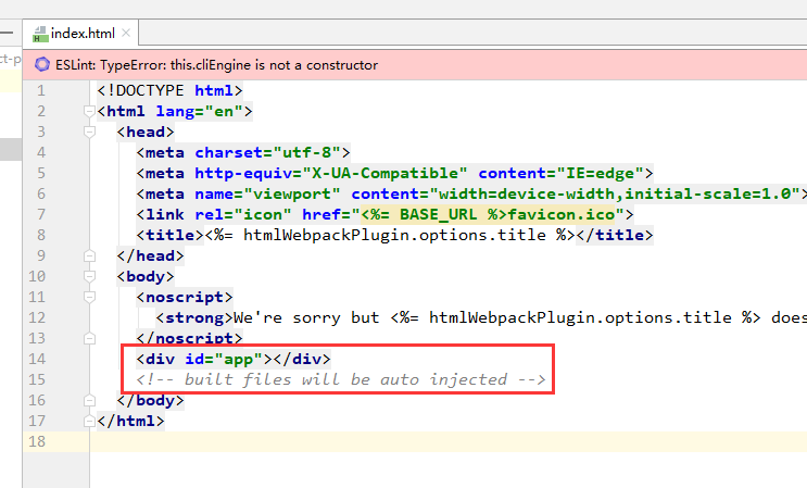 整个项目的唯一一个html文件,这也是为什么该项目叫单页面项目的原因,单页面项目会让用户有更好的体验,具体的优劣大家自行百度。这里特别需要说明的是<div id=”app”></div>,后续页面渲染的时候,是把其他的vue页面放到这个div中进行渲染的。