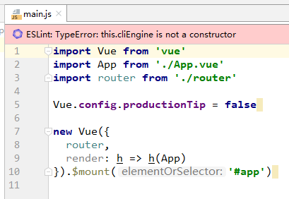 这个文件是让App.vue这个根vue文件和html文件关联起来的关键,这里的$mount(‘#app’),就是讲App.vue挂载到index.html文件的<div id=”app”></div>上;这里的 #app 是个id选择器,对应的就是 id=”app” ;如果 index.html文件的<div class=”app”></div>,则使用类选择器$mount(‘.app’)