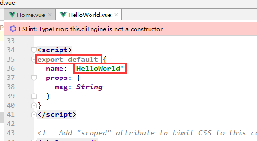 这里介绍一下这两个vue文件关于组建引用相关的知识点。我们开发的模块通常都是放在components目录下或者其子目录下,比如这里我们的HelloWorld.vue作为一个vue组件,当这个组件被Home引用时,首先我们需要在 HelloWorld.vue 中使用export将该组件起名并导出;然后,在Home.vue组件中import该组件 HelloWorld,然后在components中注册组件 HelloWorld ;最后使用<HelloWorld />标签调用该组件;这种组件的引用方式是局部引用。