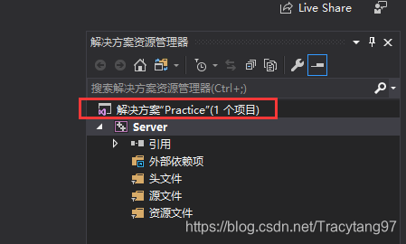 2.2 新建项目完毕后解决方案资源管理器这一栏有一个和项目文件夹同名的项目,将其改名为 Server(仅仅只是为了方便叙述),Server是服务器的意思;