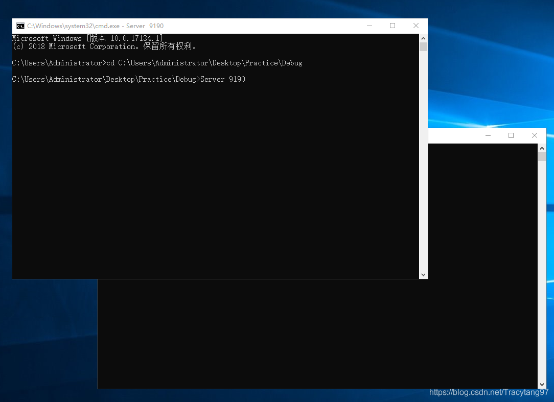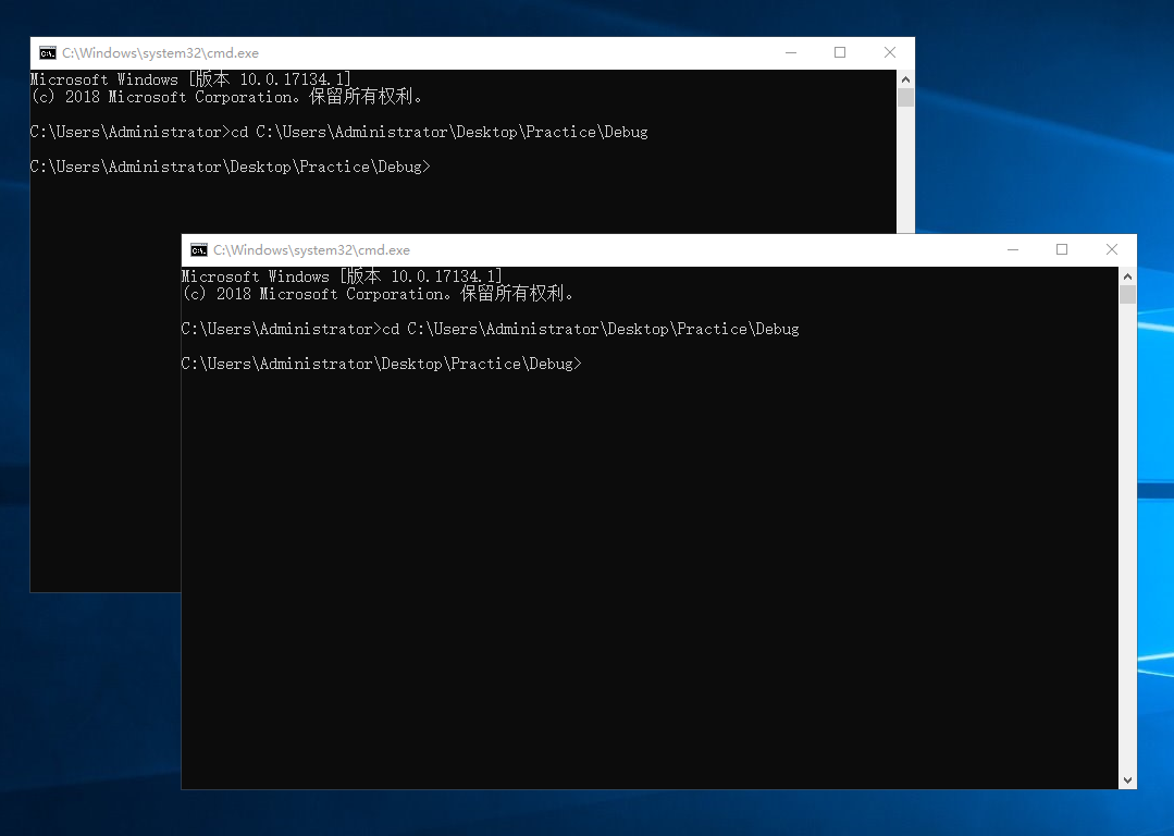 3. 以上都没有问题的情况下,打开两个命令行(Win + R,然后输入cmd,再按回车),它们稍后将分别作为服务器和客户端,在两个命令行都切换到自己的Debug目录下(命令行输入:cd + 空格 + 路径,再按回车)