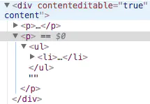 当我们调用 document.execCommand("insertUnorderedList", false, null) 来插入一个列表的时候,新的列表会被插入<p>标签中。