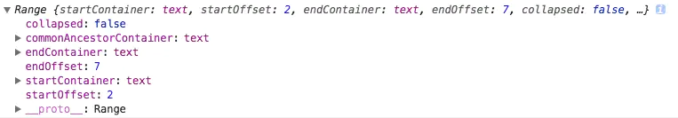 - collapsed: 返回一个用于判断 Range 起始位置和终止位置是否相同的布尔值。