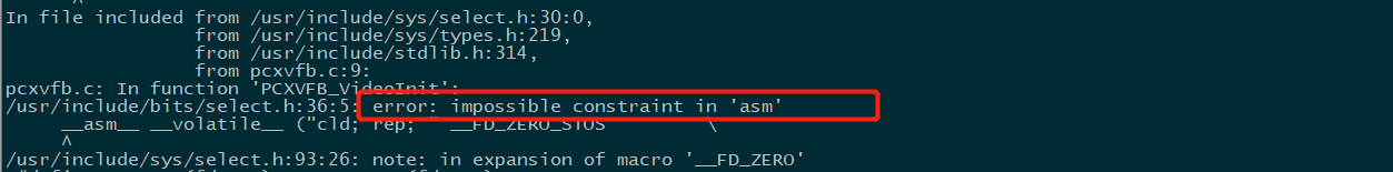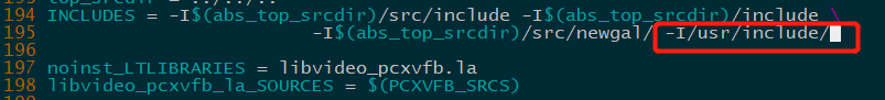 3、如下修改src/newgal/pcxvfb/Makefile文件,删掉/usr/include。然后直接 make && make install就能生成新的libminigui库,否则会如下报错。
