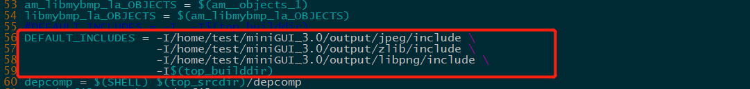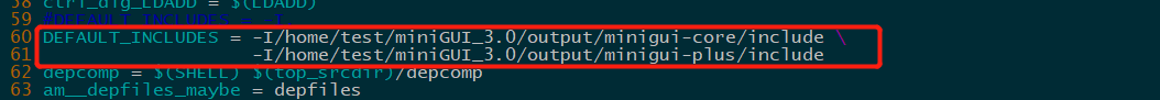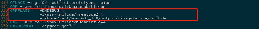 b、直接修改对应目录下的Makefile,CPPFLAGS增加上一步编出的miniGUI核心库的头文件路径