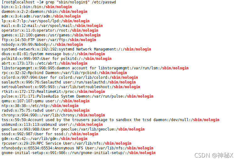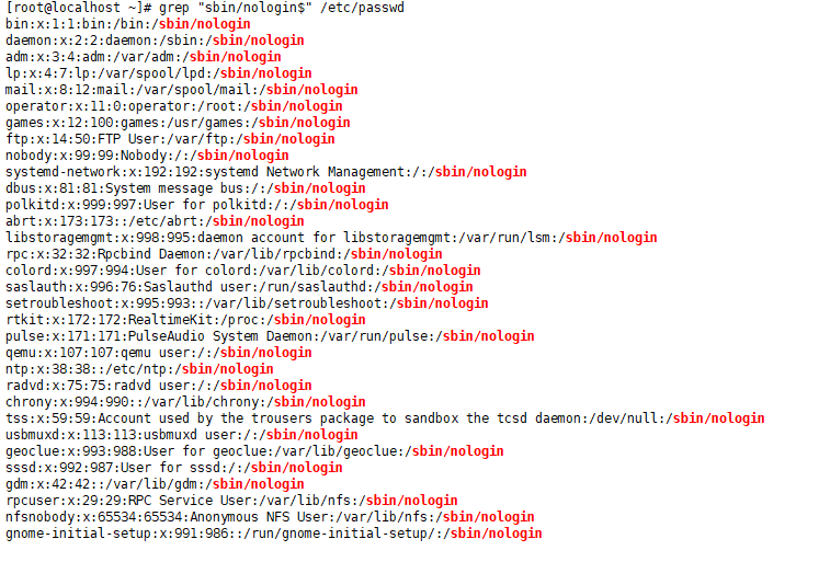 ①将非登陆用户的shell设为/sbin/nologin
