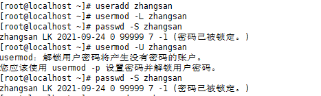 usermod -L zhangsan //锁定账号