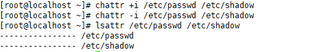 lsattr /etc/passwd /etc/shadow //查看为解锁状态