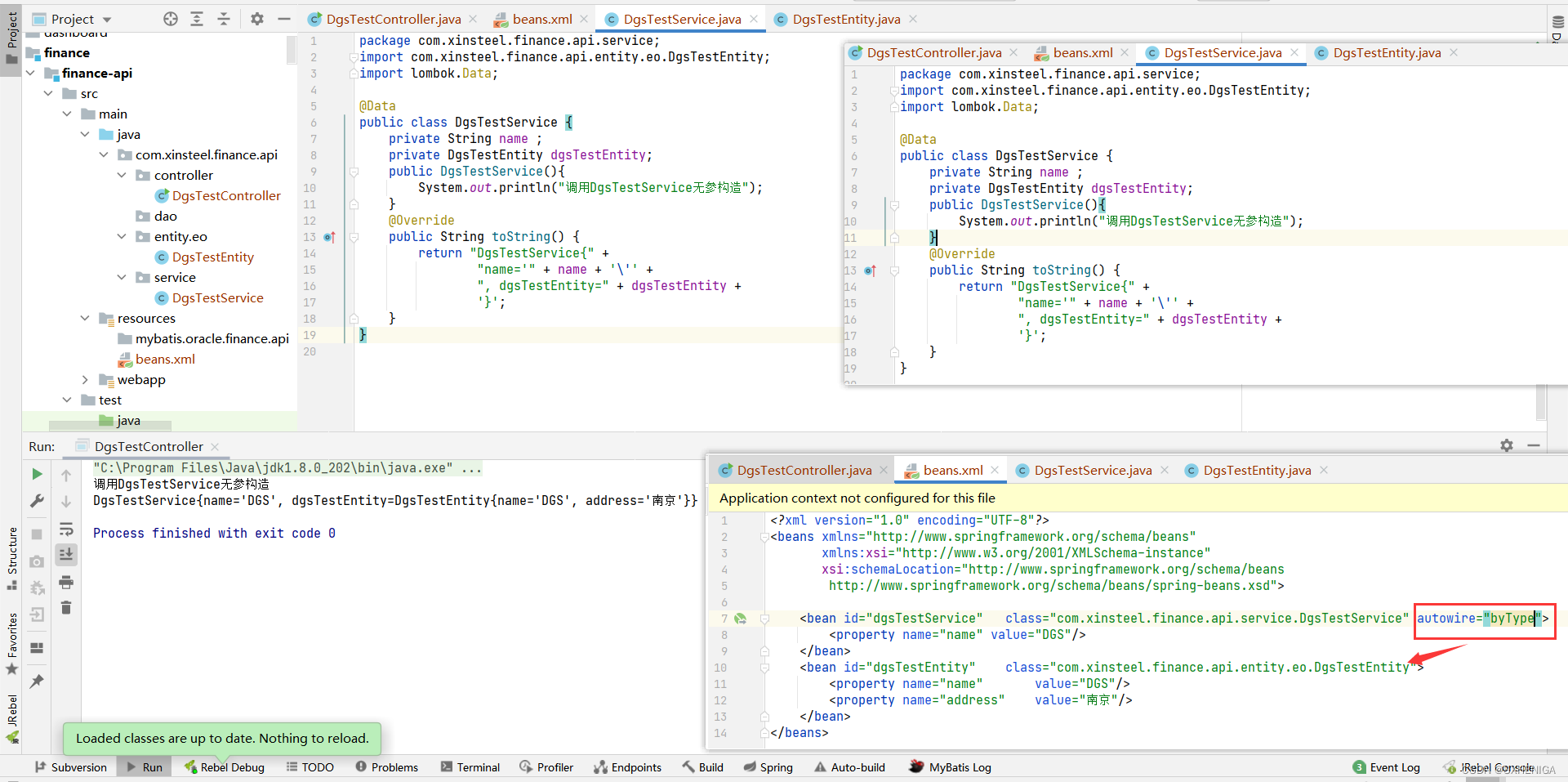<bean id="dgsTestService" class="com.xinsteel.finance.api.service.DgsTestService" autowire="byType">