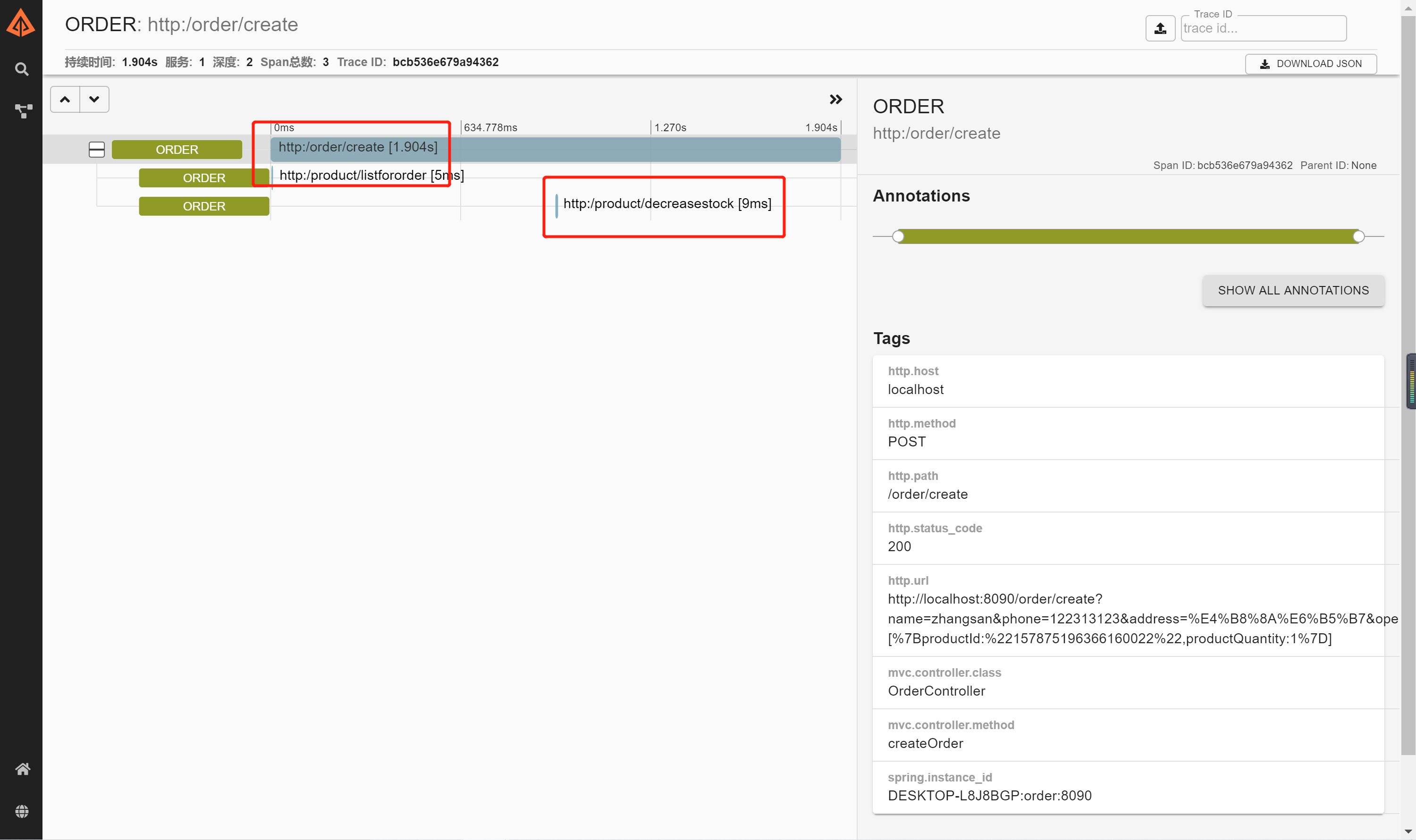 percentage: 16)启动我们的项目,再次创建订单,查看我们的Zipkin