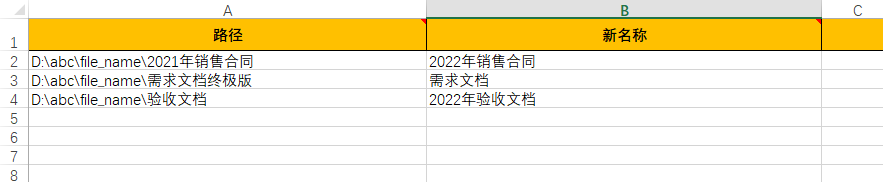 第二列需要输入修改后的文件夹名称,注意这里只需要名称而不需要完整的路径。