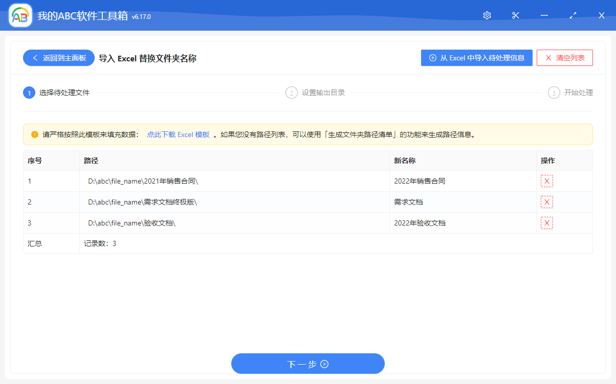 点击下一步,软件就进行我们导入 Excel 进行文件夹名称进行修改了,这样就非常方便高效的实现了对文件夹进行无规律重命名的需求。