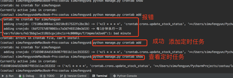 定时任务可以分成两种,一种是执行自定义的mange.py的命令,另一种是执行自定义函数。