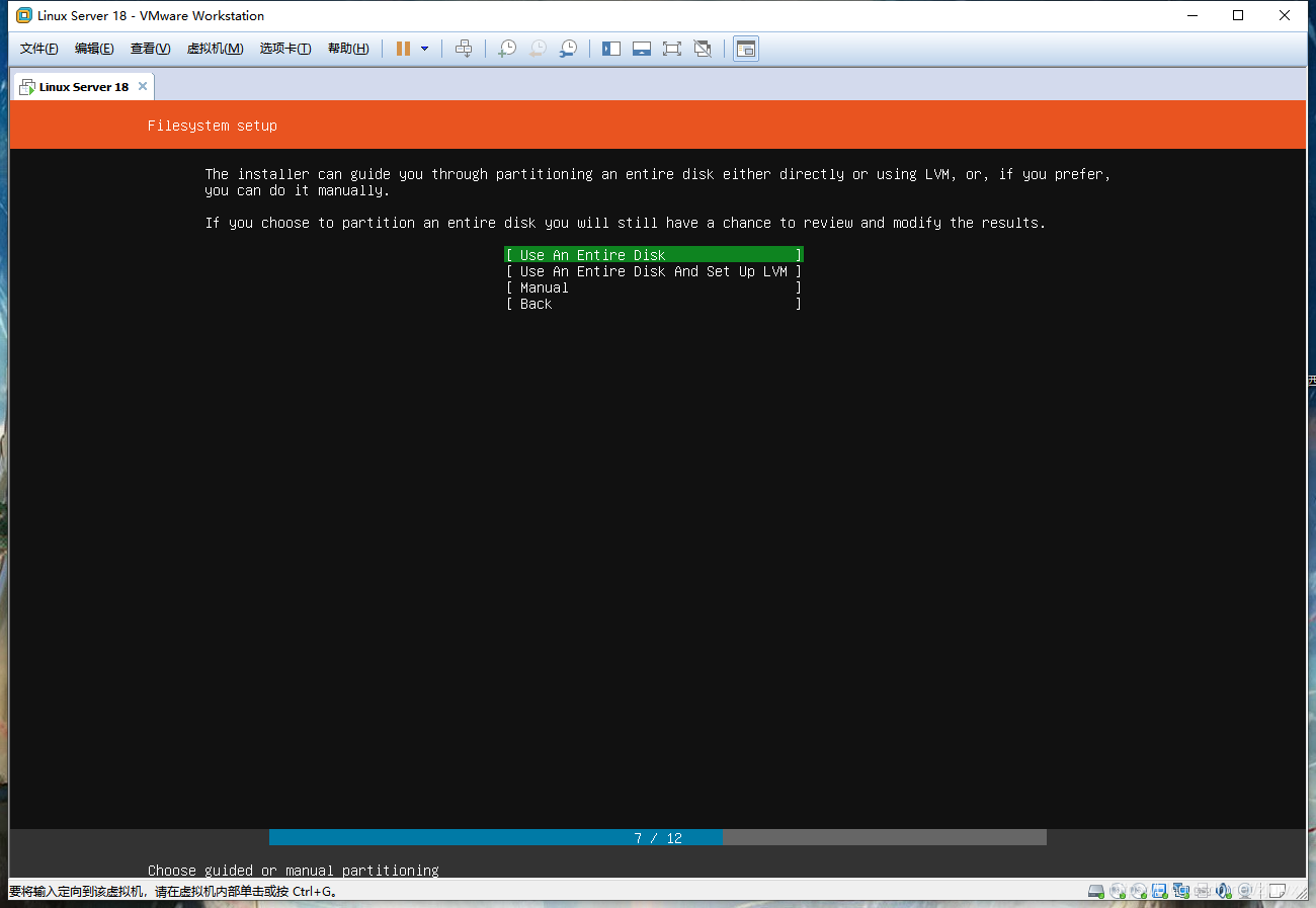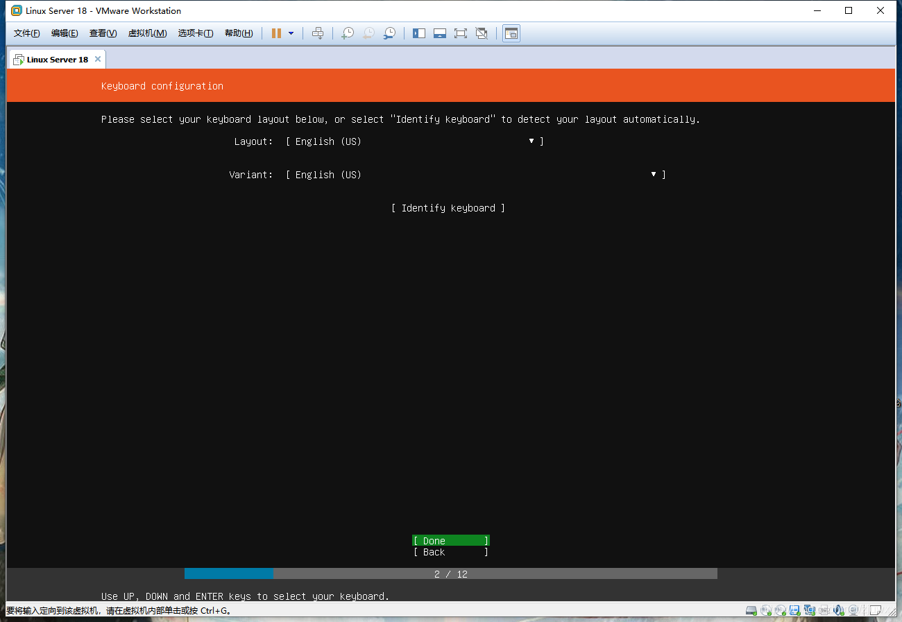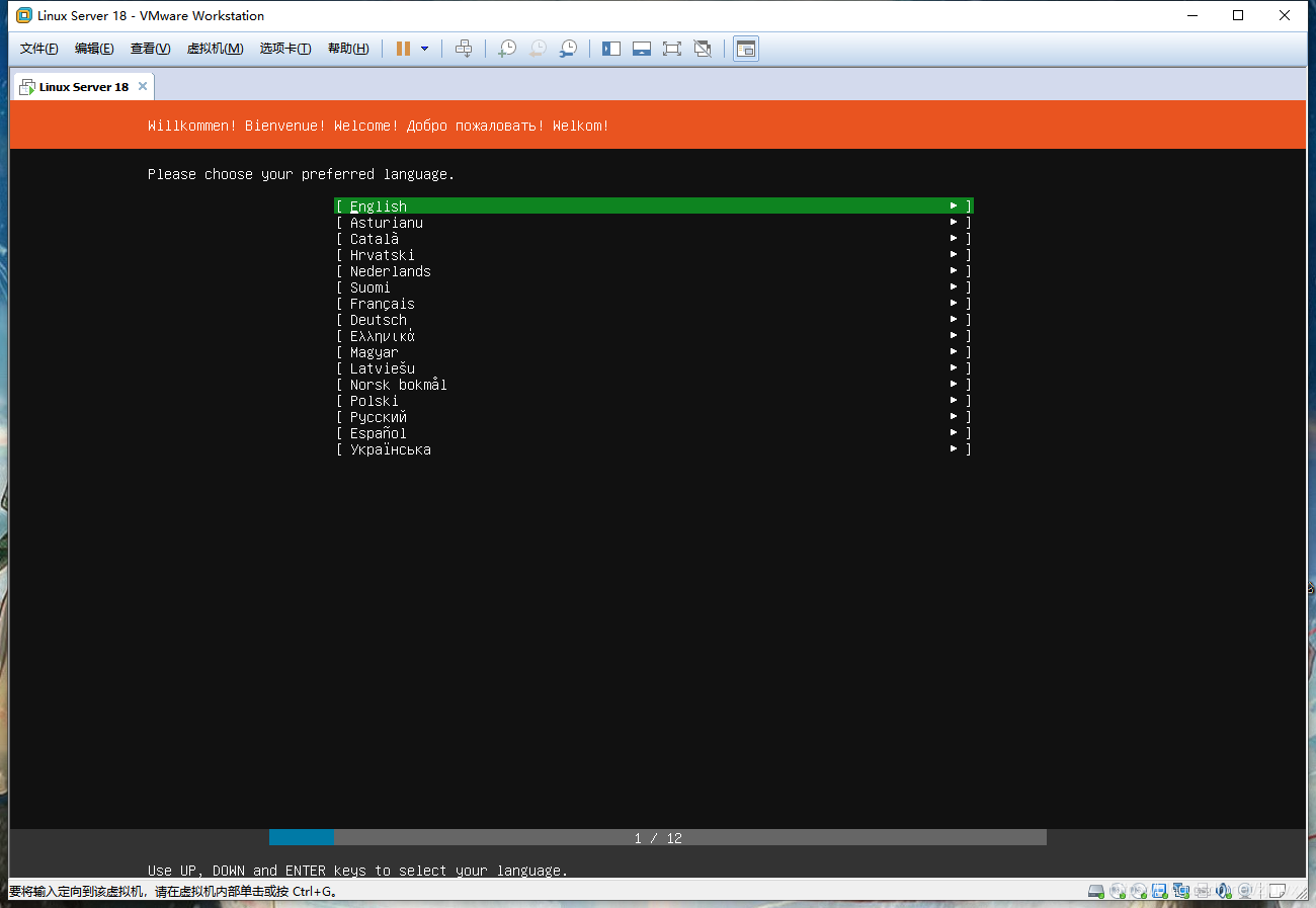 服务器版本最好选择“English”,然后敲击回车,进入以下页面