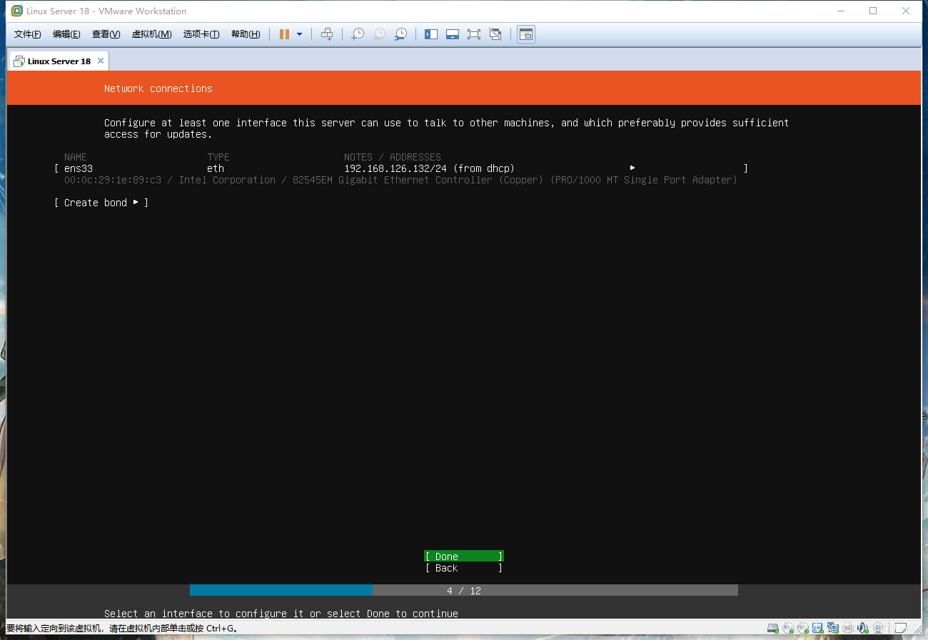 网络连接选择默认设置,敲击回车,进入以下页面