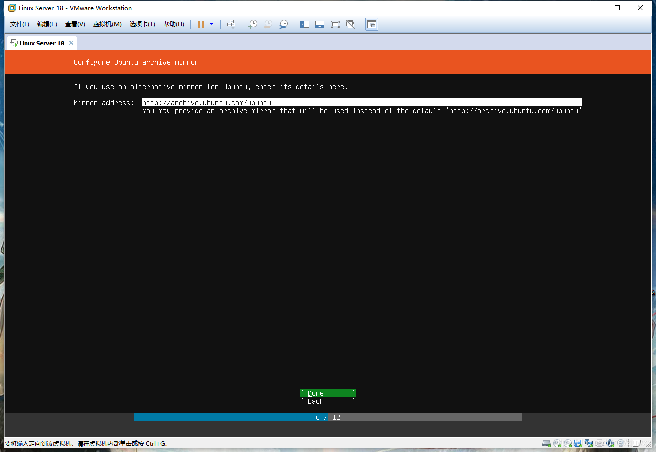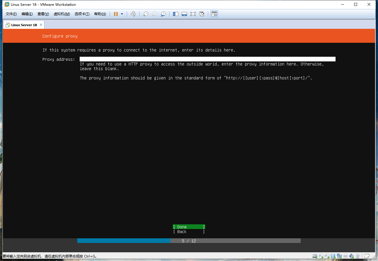 设置配置代理,如果该系统需要一个代理服务器连接到网络,输入其地址。无需理睬,直接敲击回车,进入以下页面