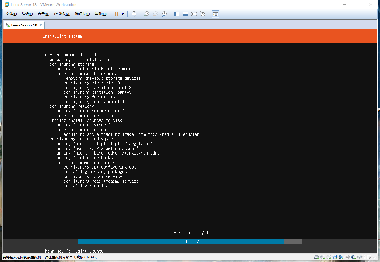 这个页面可能需要等较长时间,然后进入以下页面。可以敲击回车查看安装的详细情况