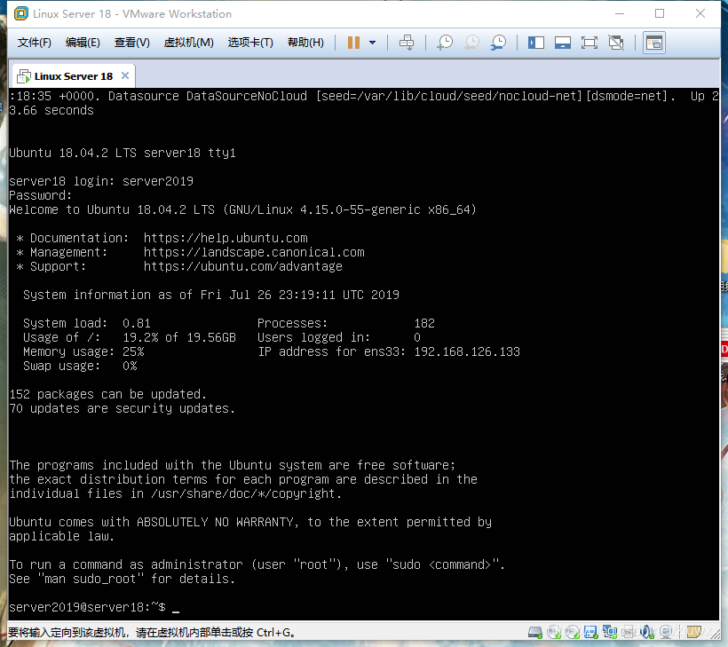 敲击回车,输入之前设置的 username 和 password 即可登录