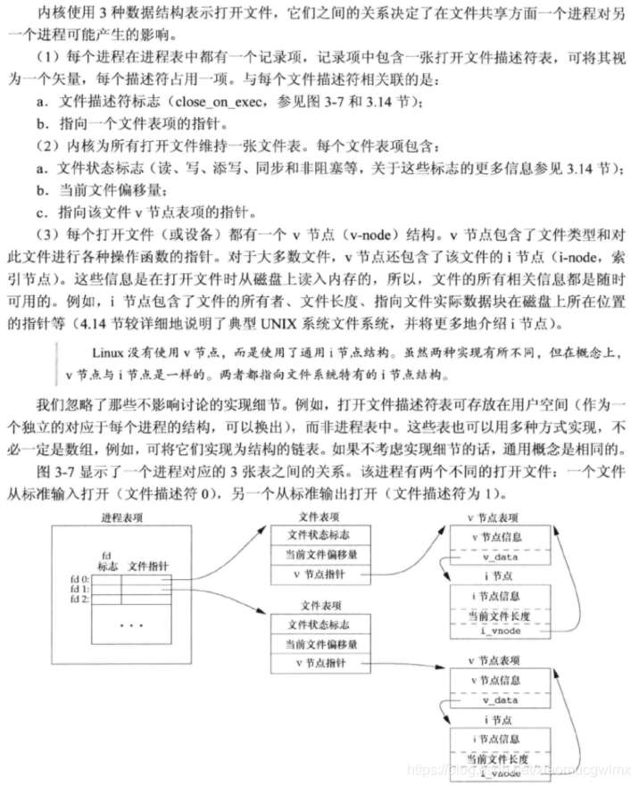 传统的UNIX系统实现在内核中设有缓冲区高速缓存或页高速缓存,大多数磁盘I/O都通过缓冲区进行。当我们项文件写入数据时,内核通常将数据先复制到缓冲区中,然后排入队列,晚些时候再写入磁盘。称为延迟写。