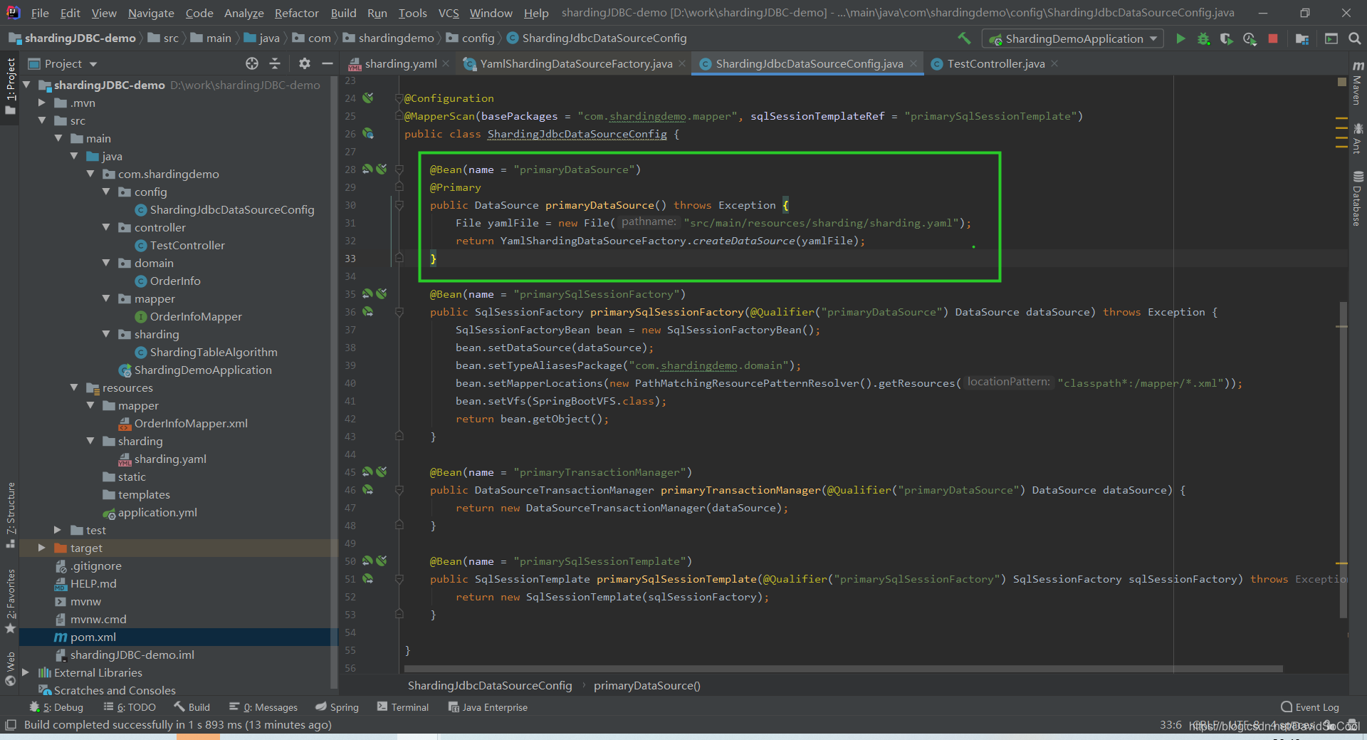 sharding.yml文件创建ShardingDataSource