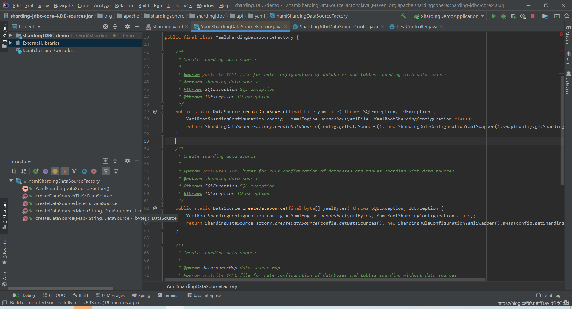 进入 ShardingDataSourceFactory