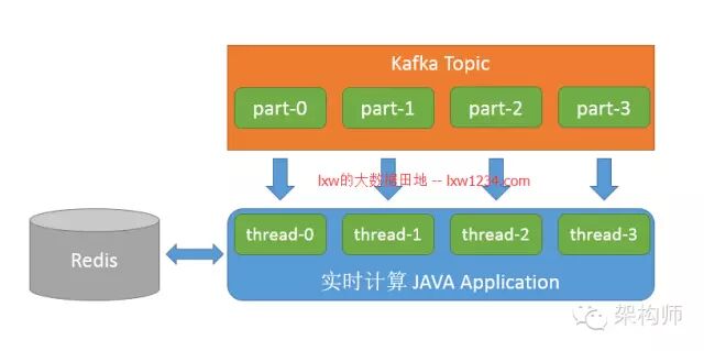 另外,每个线程会在Redis中维护自己当前的Offsets,比如:在实时计算当天累计指标的业务场景中,每天0天在Redis中记录当前的Offsets,这样,如果实时计算程序挂掉,下次启动时候,从Redis中读取当天的Offsets,重新读取和计算当天的所有消息。