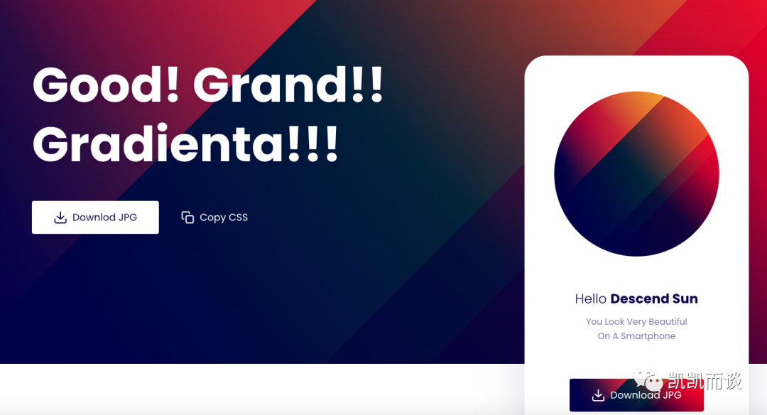 比较特别的展示方式,选定颜色组合后可以实时在线预览看到效果,有当下比较流行的颜色组合推荐,可下载效果图片和复制CSS。