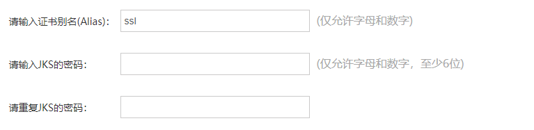 - 输入证书别名和jks密码