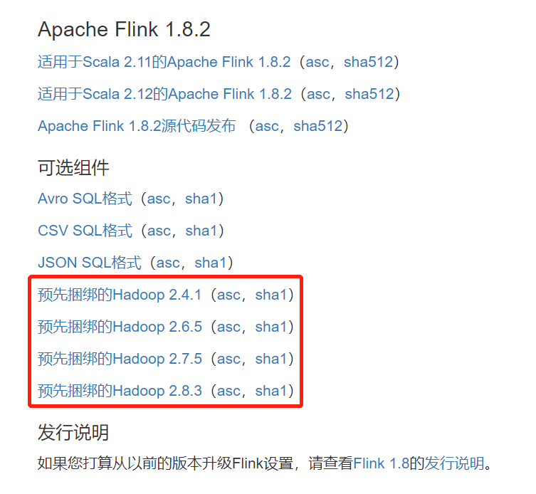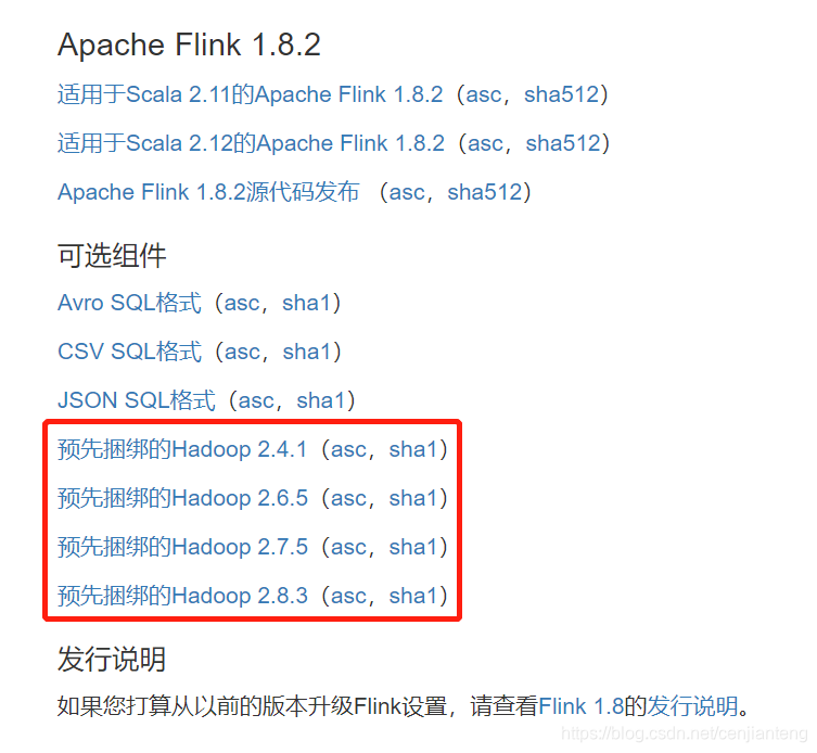 1、在官网下载hadoop的依赖: https://flink.apache.org/downloads.html