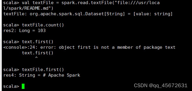 val textFile = spark.read.textFile("file:///usr/local/spark/README.md")