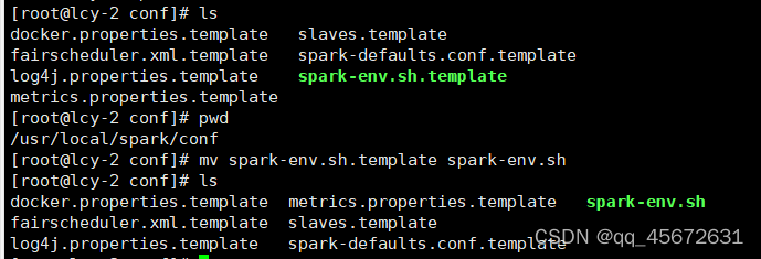 此时,我们的spark才算搭建完成,当然了我们还可以有更多的配置,比如说我们在刚刚的文件spark-env.sh中,我们还可以加入很多的描述信息和控制信息,在conf目录下还有很多的模板,我们都可以重命名之后拿来使用,这样我们的集群就更加有生命力了。在这里我们暂时不讨论spark和hadoop结合来运行程序,先让我们看一下spark在单机上的运行水平。
