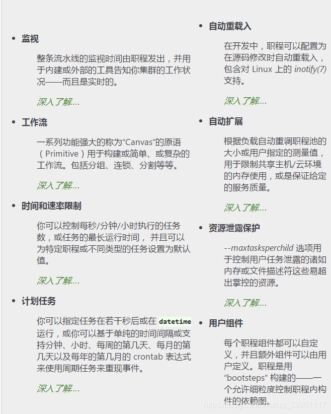 Worker是Celery提供的任务执行的单元,worker并发的运行在分布式的系统节点中。