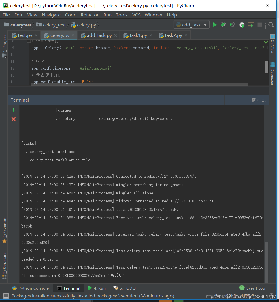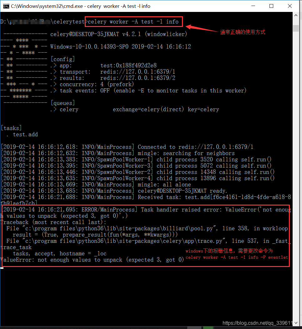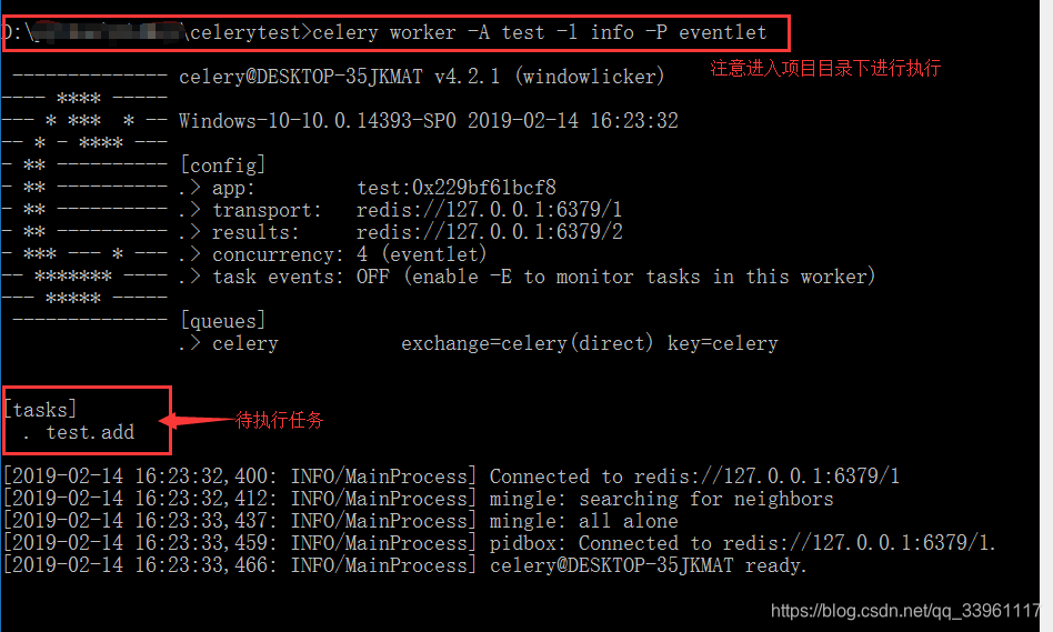 - windows下的启动命令:celery worker -A test -l info -P eventlet