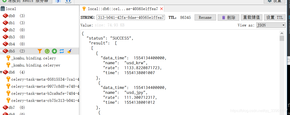 from celery_app_task import add from datetime import datetime # 指定年,月,日,时,分,秒 v1 = datetime(2019, 2, 14, 18, 19, 56) print(v1) # 转换成utc格式 v2 = datetime.utcfromtimestamp(v1.timestamp()) print(v2) result = add.apply_async(args=[1, 3], eta=v2) print(result.id)5-1-2 方式二、指定当前时间的多少时间后执行任务