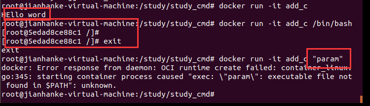 docker run -it [image] "hanke" "hujing" 输出 Hello hankd hujing 使用多个提供参数