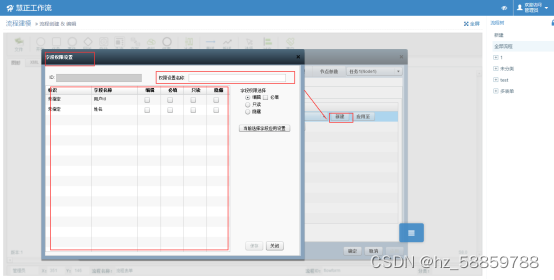 成功引入表单之后,在每个节点属性-操作权限中设置对应表单权限,其中包含所需的表单按钮权限、字段权限,如下图所示: