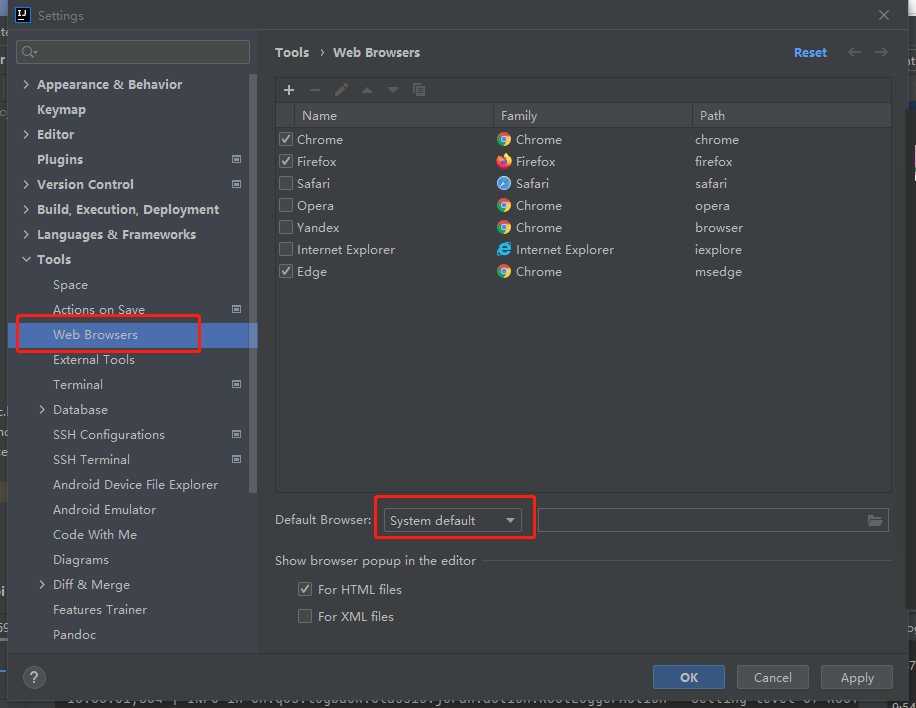 1、如下图所示在settings中找到Tools选项,将“Default Browser”中的选为“File Listed,Chrome”(前提是使用Chrome浏览器)