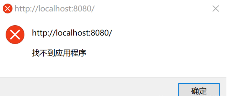 在IDEA启动后,项目部署完成等待打开网页时,弹出了一下弹窗内容显示“找不到应用程序”。