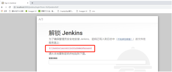 6.第一次安装jenkins,需要输入密码,可以在页面上的目录中查找