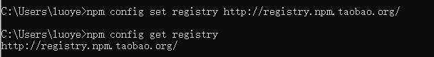 接下来设置成淘宝镜像:npm config set registry https://registry.npm.taobao.org/ 这一步不是必要的,但是可以提高后面的下载速度。