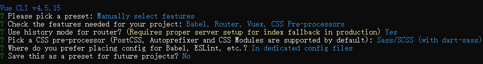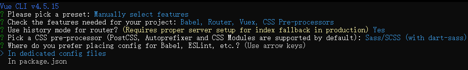 最后生成项目包,在哪个目录下执行命令,就在哪里生成项目包,并且确保目录下没有同名的文件,例如我在D盘生成我项目包,输入vue create my-project创建my-project文件夹(文件夹名称可以随意,注意不能出现大写字母)